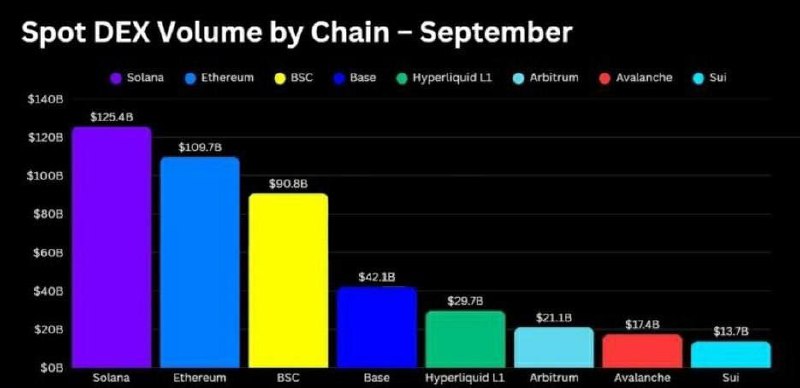 💃 Solana снова впереди Ethereum — уже 11 месяцев подряд держит первое место по объёмам торгов на DEX!